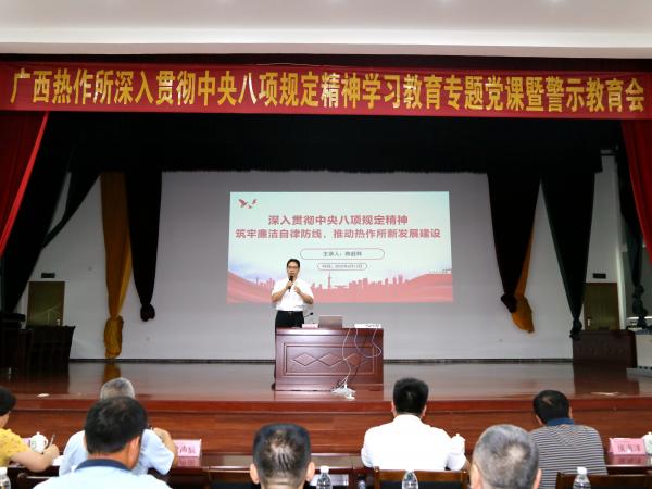 广西热作所召开深入贯彻中央八项规定精神学习教育专题党课暨警示教育会