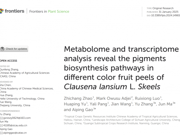 近期,广西热作所联合中国热带农业科学院热带作物品种资源研究所、四川农业大学风景园林学院在国际知名SCI期刊Frontiers in Plant Science(JCR分区Q1,中科院2区,五年平均影响因子5.7)上发表题为“Metabolome and transcriptome analysis reveal the pigments biosynthesis pathways in different color fruit peels of Clausena lansium L. Skeels”的研究论文。