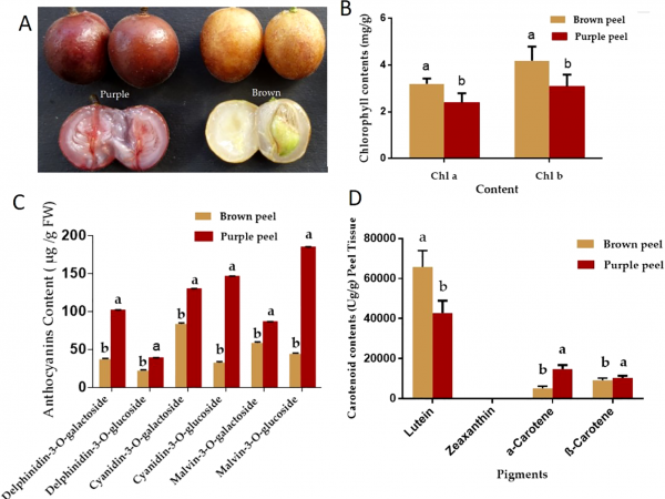 紫色黄皮(Clausena lansium L. Skeels)具有较高的类胡萝卜素和花青素含量,有良好的抗氧化功效。该研究通过代谢组学和转录组学分析,揭示了紫色与褐色黄皮果实中色素合成差异的分子机制。为植物色素生物合成提供了新的见解,并为未来通过代谢工程或育种技术提高果实抗氧化含量提供了理论依据。