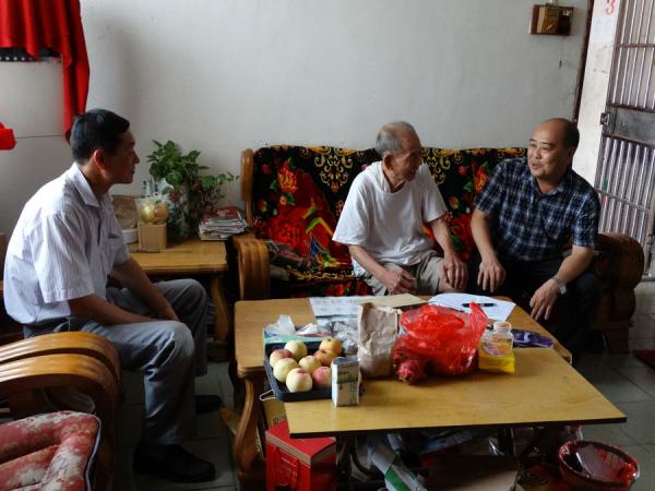 在二十世纪50年代入党的88岁高龄老党员张盛科同志家中,黄强所长与老人促膝交谈,详细询问他的身体状况和生活情况。听闻老人一切都好后,黄强所长表示,老党员们把青春献给了党的事业和热作所的发展,热作所要把关爱送给他们,使他们生活有改善,精神有依靠。随后,黄强所长代表所党委送上慰问金。