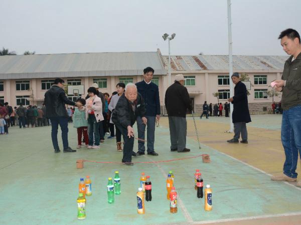 上午9点整,黄强点燃爆竹宣布游园活动正式开始,本次活动共设抽奖、猜谜语、吹蜡烛、蒙面敲锣、贴鼻子、套饮料、吹乒乓球、夹玻珠、滚球九个项目,游戏获胜者可以得到瓜子、橄榄、饮料等小奖品,灯光球场内气氛热烈,欢声笑语随处可见。