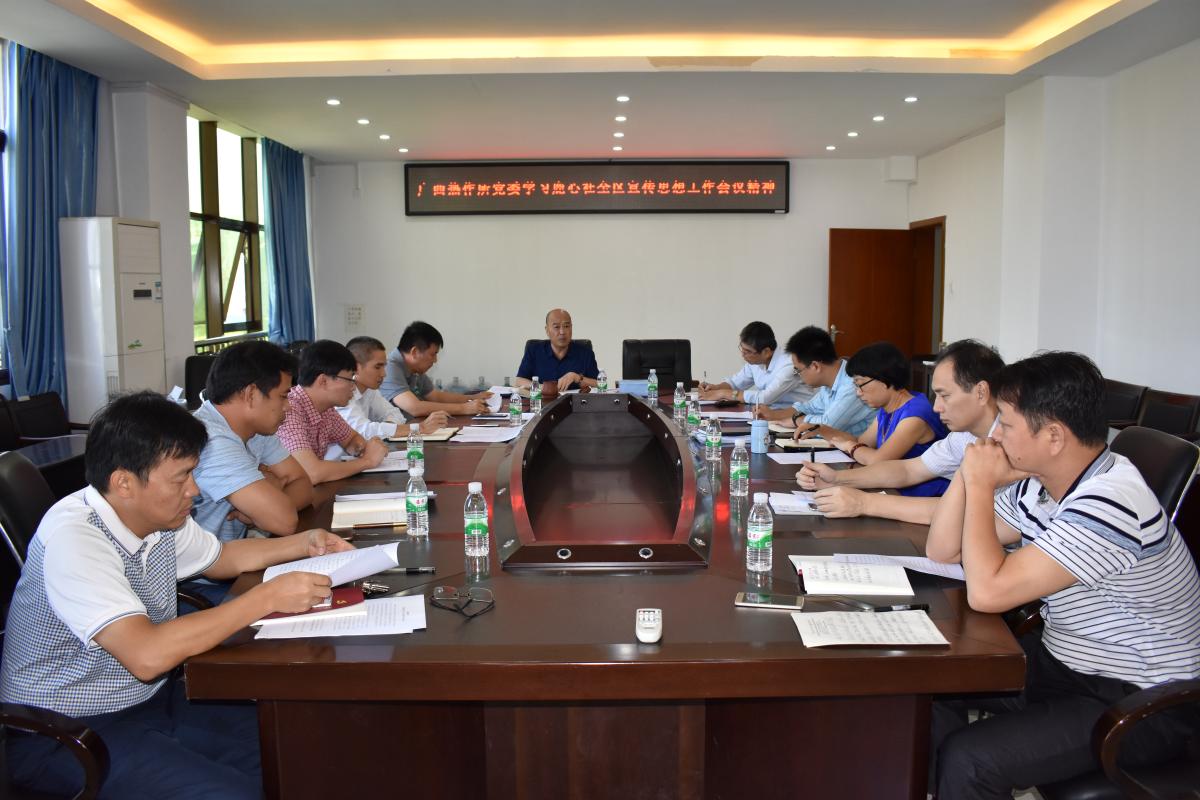 热作所党委深入学习贯彻习近平总书记关于宣传思想工作的重要思想,全面落实全国宣传思想工作会议精神。9月30日上午,热作所召开党委扩大会议学习自治区党委书记鹿心社在广西宣传思想工作会议上的讲话精神。所党委书记、所长黄强,所纪委书记、副所长池昭锦,在家党委班子成员和各党支部书记参加会议。