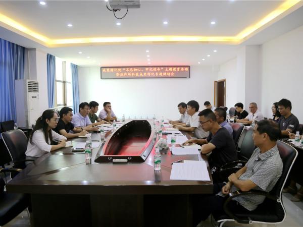 2019年8月16日上午,广西农科院成果转化处车江旅处长一行4人到广西热作所开展“不忘初心、牢记使命”主题教育活动暨热作所科技成果转化主题调研会。热作所副所长庞新华、李军、梁声侃及部分科研中心主任出席研讨会。