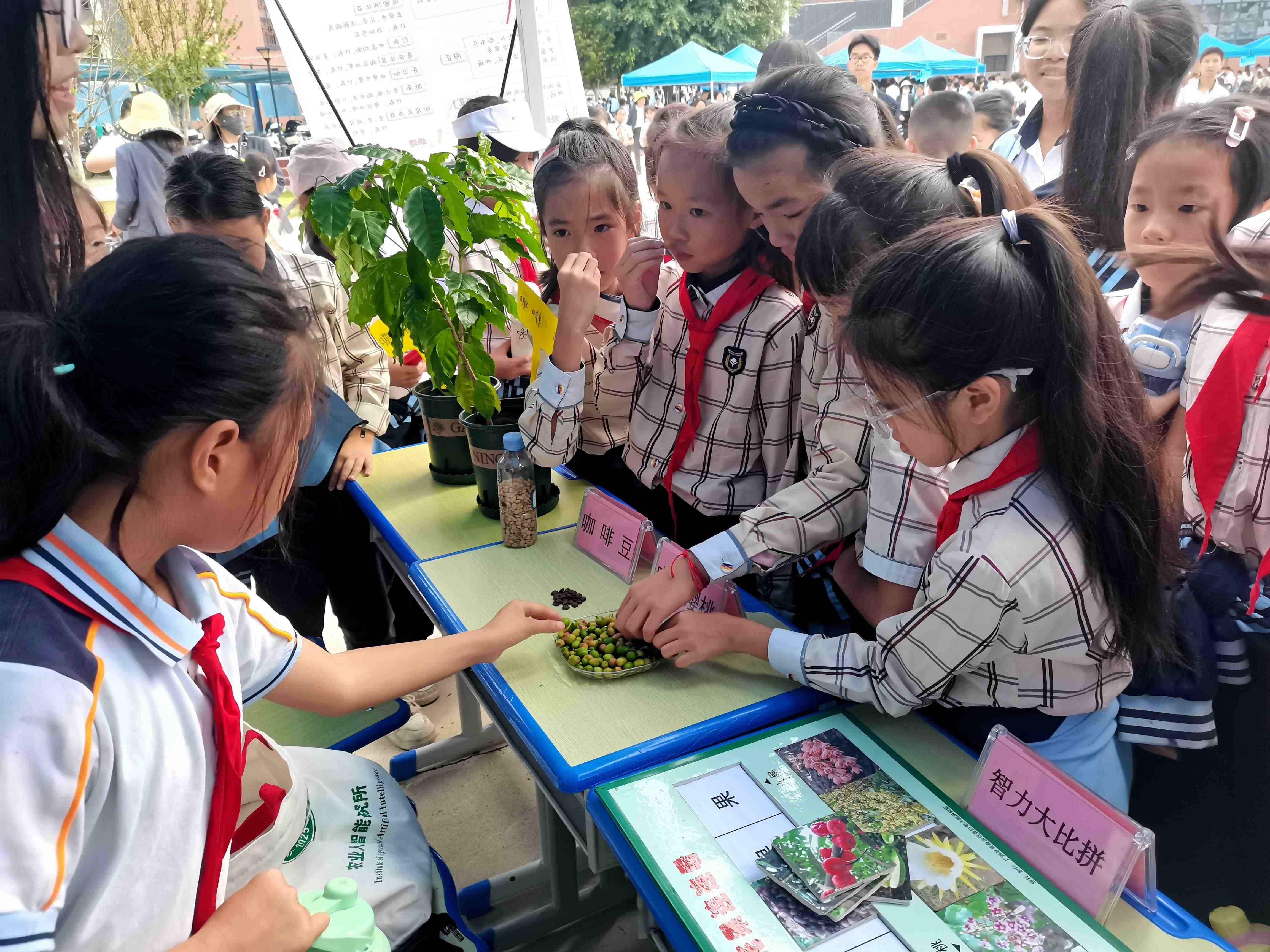 在活动中,学生们在科普团队成员的带领下观察了解咖啡的茎、叶及果实特征,并通过拼图游戏加深对植物花果形态结构的认知;活动还设置了测糖实验环节,团队成员结合日常生活场景,将抽象的物理、化学知识转化为通俗易懂的知识点,同学们纷纷感叹科学就在身边。本次活动不仅激发了学生对科学的兴趣,更培养了他们的实践动手能力,在学生们心中播下了科学梦想的种子。
