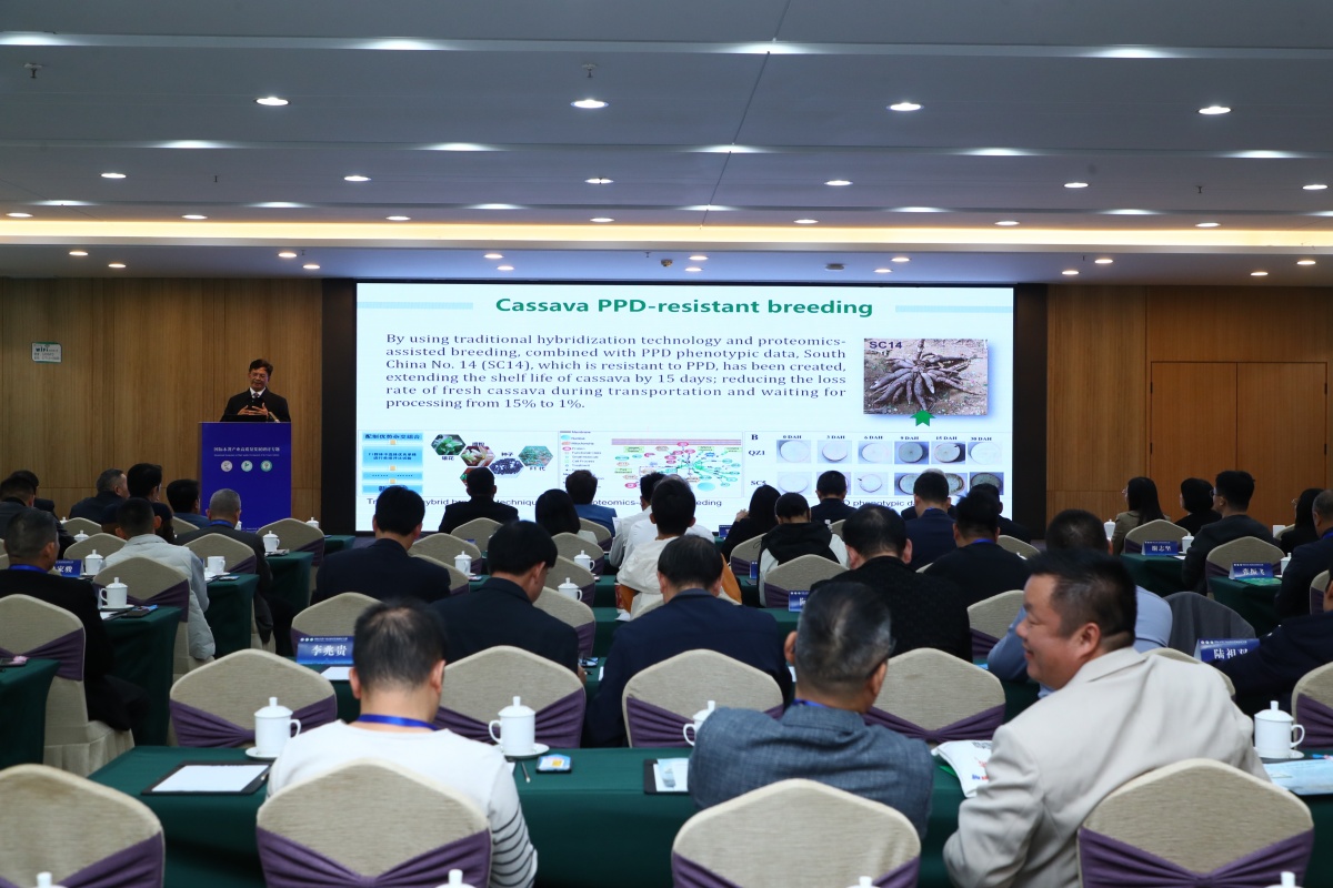 中国热带农业科学院热带作物品种资源研究所陈松笔研究员作《中国木薯产业概况和研究进展》报告。