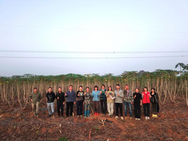 团队以“科技赋能产业,产业带动增收”为目标,深入木薯主产区开展多维度服务,在广西北海市合浦县、玉林市兴业县等地开展木薯机械化栽培和食用木薯标准化种植技术培训,累计培训农户、基层技术人员1 920人次,提升了木薯种植业者的技术水平。团队成员分别在广西北海市合浦县、贵港市桂平市、玉林市兴业县等主产区驻点服务并建立示范基地,开展木薯新品种引进、食用木薯高效栽培技术指导及木薯间套作高效栽培技术推广示范等工作,解决生产实际难题,确保技术从实验室精准落地田间,带动当地农户增收,为巩固脱贫攻坚成果、推动乡村振兴注入产业新动能。