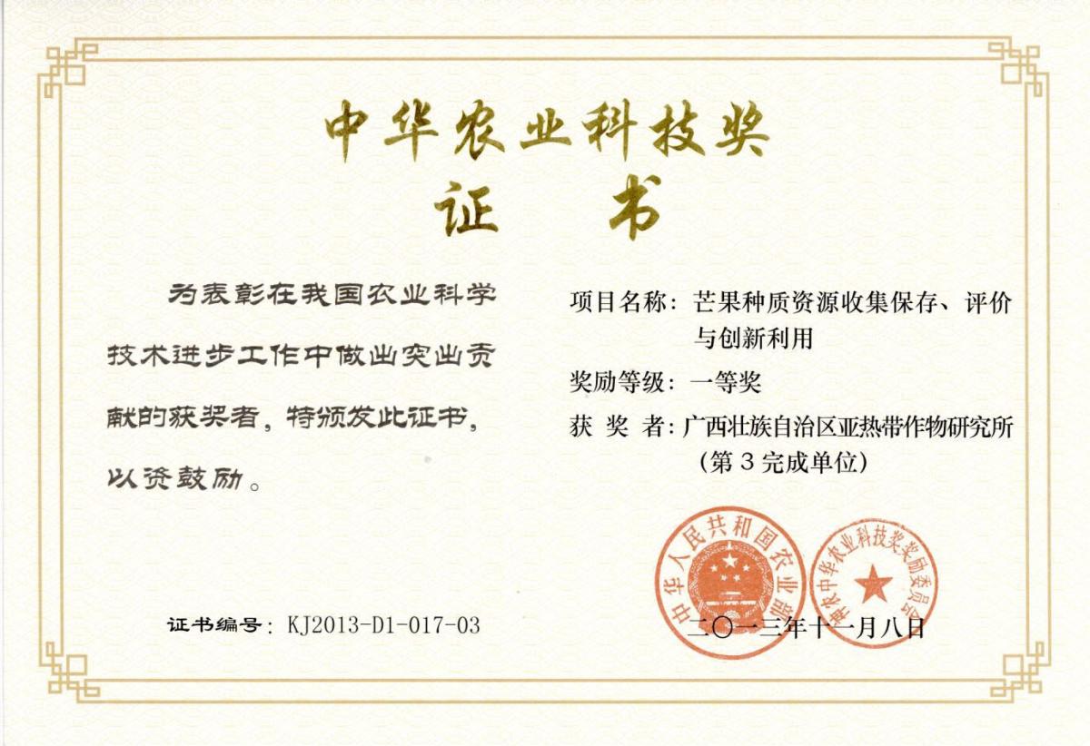 广西热作所作致力于木薯、芒果、澳洲坚果、剑麻、木瓜、火龙果等作物新品种选育,经过几代科技人员的不懈努力,选育出木薯GR891、GR911、桂热3号、4号、5号、10号,芒果桂热82号、120号,桂香龙眼,澳洲坚果桂热引3号,甘蔗桂热2号等一批优良品种,共有41个作物新品种通过审定,20个花卉品种获国际登录。