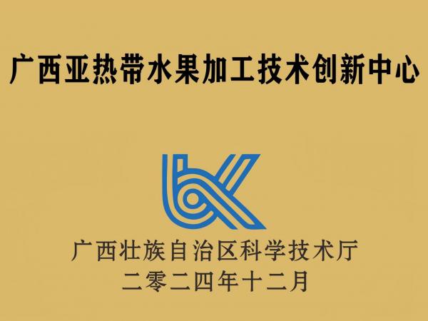 技术创新中心于2024年12月获得自治区科技厅转建批复(桂科基字〔2024〕293号),依托单位为广西壮族自治区亚热带作物研究所,共建单位有广西冰客食品有限公司、广西果丰食品有限公司、广西鲜友食品科技有限公司。中心固定人员94人,其中从事科技活动人员88人,从事管理活动人员6人;有高级职称53人,硕士以上学历70人;二级研究员2人、认定为广西D层次人才2人,E层次人才1人、南宁市高层次人才B类2人,D类2人。