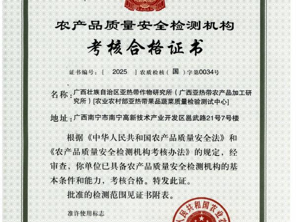 农业农村部亚热带果品蔬菜质量检验测试中心