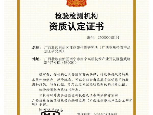 农业农村部亚热带果品蔬菜质量检验测试中心(以下简称中心),由广西壮族自治区亚热带作物研究所承建,是依法设立的非独立法人事业单位,能独立承担第三方公正检验。中心现有农业农村部亚热带果品蔬菜质量检验测试中心、农业农村部农产品质量安全风险评估实验室(南宁)、农业农村部亚热带果品蔬菜质量安全控制重点实验室(Key Laboratory of Quality and Safety Control for Subtropical Fruit and Vegetable,Ministry of Agriculture and Rural Affairs)等3个国家级和省部级业务及科研平台。现有固定人员37人,其中高级职称20人(正高级3人),博士学位1人。检测能力资质范围涉及“绿色食品 茶叶”等300多个农产品、植物养分及全氮等1761多个参数,是绿色食品、无公害农产地产品、地理标志产品品质监定定点检测机构。