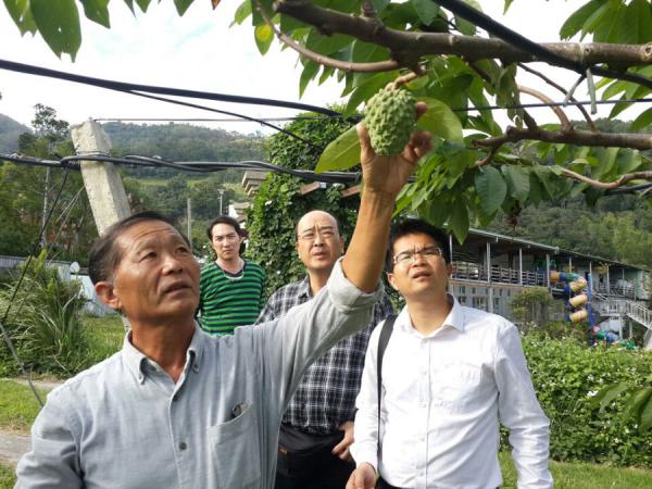 在台湾期间,黄强所长一行拜访了屏东科技大学颜昌瑞副校长,听取了种质资源创新利用研究学术报告并参观了屏东科技大学农学院园艺系热带水果种质资源保存基地,双方科技人员在热带水果品种选育及栽培技术进行了交流。同时广西热作所与屏东科技大学在热带水果种质资源创新利用达成了合作意愿。在屏东科技大学颜昌瑞副校长悉心安排和陪同下,我所科技人员还参观了台糖万丹农场、台湾香蕉研究所,以及凤梨、莲雾、释迦、金橘等产销合作社。