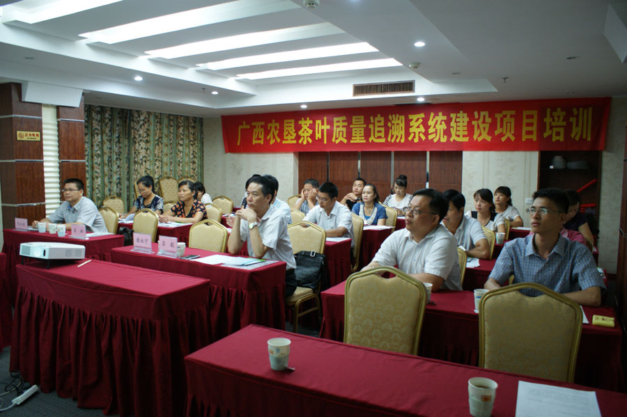 2014年7月14日,应广西农垦茶叶集团公司邀请,广西热作所检测中心科技人员陈永森高级农艺师赴该公司开展现场技术培训。参加培训人员有区农垦局科技产业处及茶叶集团公司的领导,大明山制茶公司、百合制茶公司、先锋制茶公司等分公司的质检员及生产主管。内容包括茶叶产品质量控制、投入品使用、茶叶QS审查通则及出厂检验的相关要求。为了取得更好的培训效果,检测中心把鲜茶叶农药残留快速检测设备带到了会场,对检测操作步骤和检测结果的判定进行了逐步的讲解和演示,对茶叶集团公司提供的鲜茶叶盲样进行了现场检测示范,取得了极好的培训效果。