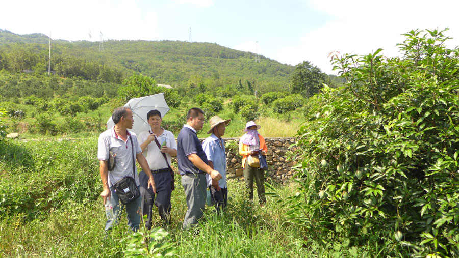 2014年8月7日,广西科技厅组织专家到百色市西林县对热作所主持的科研项目《 优质晚熟芒果新品种桂热芒3号中试与示范》进行田间测产。该项目自去年获得立项以来,项目组成员认真开展研究,及时实施高接换种工作,并在高接换种后做好肥水供应及新梢保护等田间管理工作,高效率实现了高接换冠第2年即开始投产的目标。经测定,产量超过项目任务书规定的项目实施第1年产量,达成既定目标,取得了良好的效果。