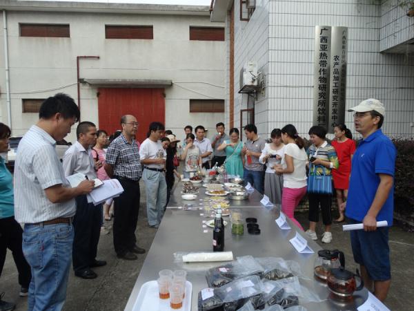 在为期两天的检查工作中,按照计划路线,检查领导小组先后到农产品加工研究所(饮料厂)、科普旅游中心(亚热带植物科普园)、亚热带花卉与园林植物研究中心(大棚杜鹃花、石斛兰)、经济作物研究中心(龙荔圃)、检测中心及重点实验室(科研楼)、坚果研究中心(澳洲坚果种质资源圃)、经济作物研究中心(龙舌兰种质资源圃、番石榴种质资源圃)、芒果研究中心(芒果种质资源圃)、木薯研究所(木薯育种与栽培推广基地)、经济作物研究中心(澳洲坚果苗圃、剑麻渣饲养黑山羊圃、杨桃种质资源圃、番木瓜种质资源保护广西创新基地)、加工研究所生态茶园、经济作物研究中心(蓝莓南引基地)、花卉研究中心(辣木基地)、重点实验室(锯叶棕引种基地)、甘蔗研究所(二队甘蔗基地)、坚果研究中心(二队坚果基地)、花卉研究中心(扁桃木基地)等科研基地进行了实地检查,听取了各科研部门相关负责人所做的对在研项目执行情况(包括研究进展、基地建设、经费使用、取得成果、存在问题、下一步计划以及需要所里提供哪些方面的支持等内容)的汇报,有关在研项目负责人也进行补充。检查领导小组针对各相关部门科研及生产中成功的做法和经验实时地进行了总结,同时针对个别部门存在的问题指出了错误,并提出了整改建议。