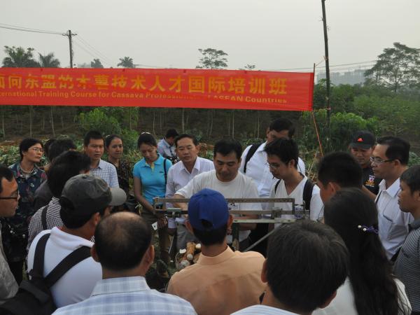2015年11月22-29日,由广西热作所承办的 “面向东盟的木薯技术人才国际培训班”在南宁顺利开班。热作所邀请了来自泰国、越南和中国的木薯育种、栽培和加工等领域的7名木薯专家,整合热作所的人力和基地等资源,培训了来自印度尼西亚、柬埔寨、缅甸、泰国、越南和中国的木薯研究人员、政府官员、科技推广者和木薯种植大户等51名学员,其中东盟5国学员30人,中国学员21人。