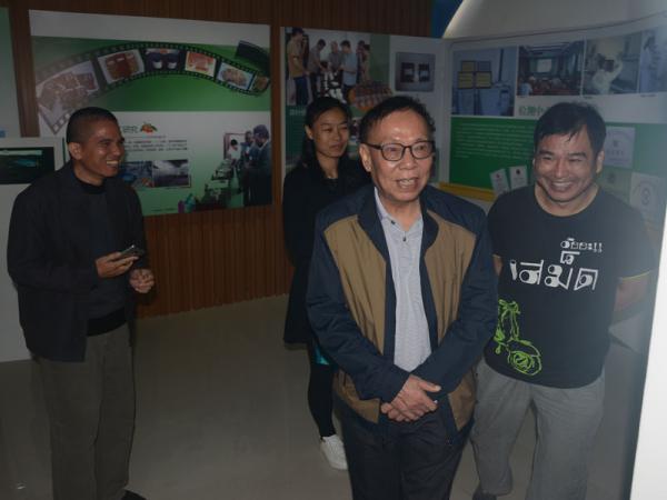 吕飞杰参观了热作所的科技展厅,办公室梁声侃主任向来宾们介绍了我所的发展历史、种植资源收集与利用、农产品加工、科研成果等方面的研究情况。吕飞杰品尝了我所番石榴以及木薯饼干、芒果干等农产品加工制品,作为农产品加工科研方向的资深专家,吕飞杰饶有兴致的对我所农产品加工工艺研究方面作了仔细了解。