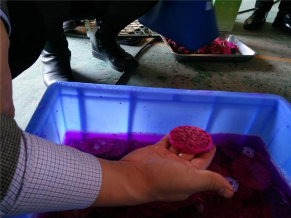 热作所所科研人员首先到农业科学院果树研究所火龙果培育基地学习交流,参观了广东省农业科学院火龙果培育基地,观察了火龙果植株、果实情况,品尝了火龙果优良品种,听取广东省农科院研究人员对火龙果育种研究技术以及贮藏保鲜的总结报告,双方就火龙果栽培技术、品种选育等问题进行了探讨,为本所火龙果项目的顺利开展起到了良好的推进作用。