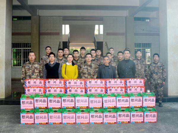 2017年1月23日,广西热作所组织人员专程在春节前夕,赴军民共建单位广西军区后勤部汽车队看望慰问官兵。所办公室梁声侃主任带队一行5人,代表热作所领导班子和广大职工,为官兵们送上慰问品,致以亲切的新春问候和节日的祝福。