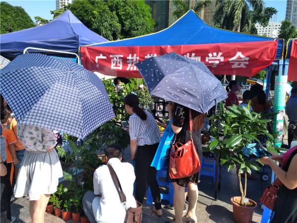 此次参展展位布置了一幅宣传“广西亚热带植物科普园”的海报,展出的咖啡树、越南抱茎茶以及铁皮石斛、天宫石斛等盆栽,吸引了众多参观者。