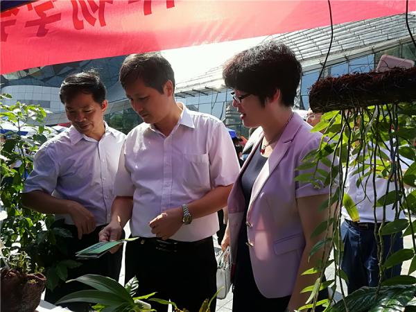 开展期间,广西科协党组书记、副主席纳翔一行巡视了热作学会的展位,并详细询问了咖啡树和天宫石斛的生长特性。