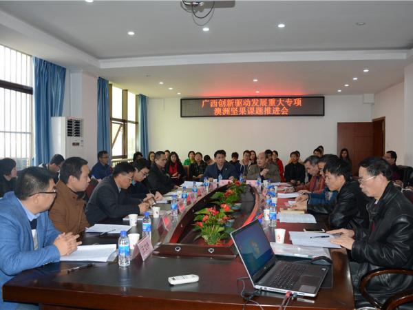 2018年2月9日,广西创新驱动发展专项“贫困地区木本粮油产业科技扶贫示范”澳洲坚果课题推进会在广西热作所举行。