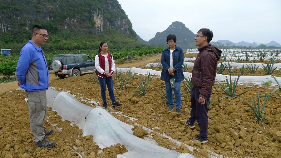 期间,试验站团队与示范县骨干就国家麻类产业技术体系“十三五”的年度任务进行讨论,落实两地后期剑麻高效间种试验的选址、人员安排及产量监测等工作,并收集麻渣还田地土样进行土壤养分检测,用于评估麻渣还田对土壤的影响。