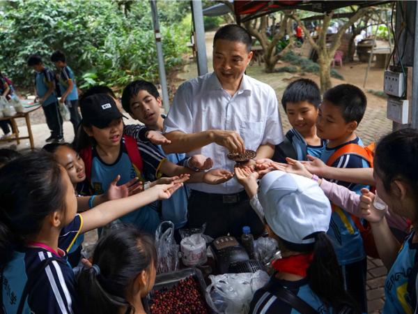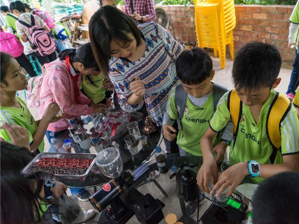 师生家长们按班级分为四个组,在工作人员带领下,进行亚热带植物王国探秘之旅。在参观植物园区途中,领略了亚热带植物的生物多样性,观看了植物嫁接技术演示,了解农业栽培技术的神奇;亲身参加农事体验,种植咖啡苗,参观咖啡园,了解了咖啡由咖啡苗长成咖啡树,最终结出咖啡豆的样子;还观看了咖啡加工工序演示,并亲自动手进行咖啡去皮、烘焙、研磨,品尝到了现磨现泡的咖啡。
