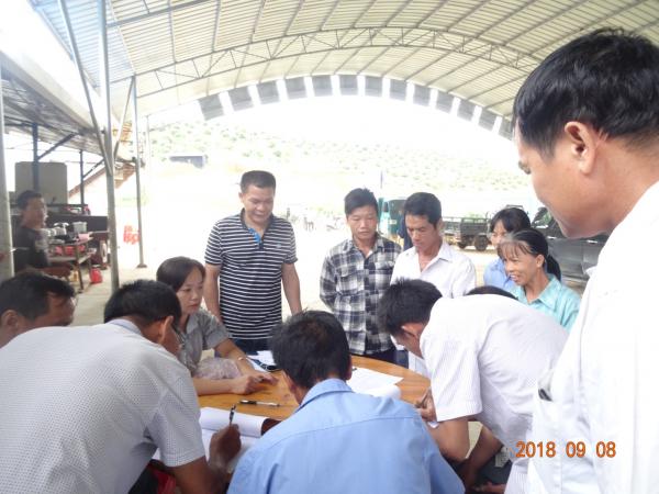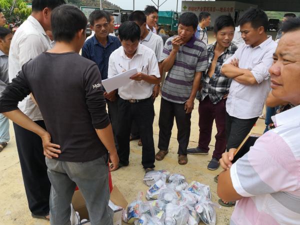 培训班得到了田东县思林镇新圩村挂村第一书记刘业行的大力支持,村委会李德界支书、黄升红主任召集了全村9个村屯有芒果种植的50个建档立卡的贫困户,35个非贫困户共85人参加培训。培训班由李德界支书、黄升红主任主持,邀请了广西芒果创新团队首席专家黄国弟研究员、李日旺高级农艺师作采后整型修剪、肥水管理及其它栽培技术授课,陈永森高级农艺师作芒果主要病虫害的识别、监测、绿色防控及农药桶混技术等农药科学使用知识培训。培训前给每一位参加培训的果农发放资料1份(包括黄国弟主任编写的《芒果品种与栽培技术》书籍、陈永森编写的《广西芒果主要病虫害及其防治》书籍以及全年芒果防控月历),共发放85份。培训结束后,科技特派员一行给每一个贫困户发放示范用新型低毒农药1份(包括吡唑醚菌酯、春雷•王铜或氢氧化铜、螺虫乙酯),共发放农药50份。