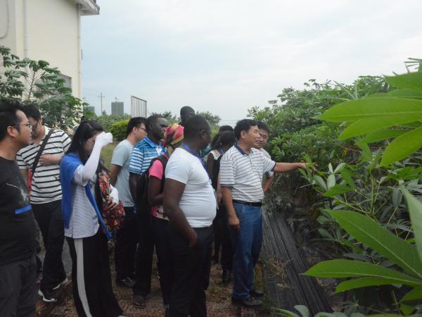 李军研究员首先带领研修班的学员参观了广西热作所科技成果展厅,介绍了热作所的发展概况。随后李军通过PPT课件的形式讲解了木薯栽培种植、生产加工等方面的知识,激发了学员们浓厚的兴趣。课后学员们还实地考察了广西热作所国家科技部木薯国际科技合作基地,并品尝了木薯加工食品木薯羹。
