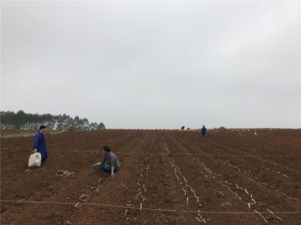 春早万象新,春耕农作忙。又到了一年一度的春播季节,2019年3月20日,广西农垦甘蔗研究所科研团队赴广西农垦金光农场友谊分场布点,开展桂热系列甘蔗品种比较试验。参加此次试验的品种包括自主选育的桂热2号、桂热3号甘蔗新品种和2015年以来通过杂交组合配置筛选的优良新品系。在金光农场的大力支持和科技人员的共同努力下,团队目前已完成8个品种(系)的布点种植,为未来进一步开展优良品种(系)筛选奠定基础。