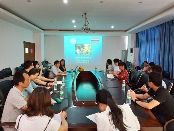会上,KWANHATAI TANONGJID就自身的研究领域、泰国各区域分布的水果种类及今后开展的工作内容做了介绍,科技人员与KWANHATAI TANONGJID开展讨论交流,氛围活跃。