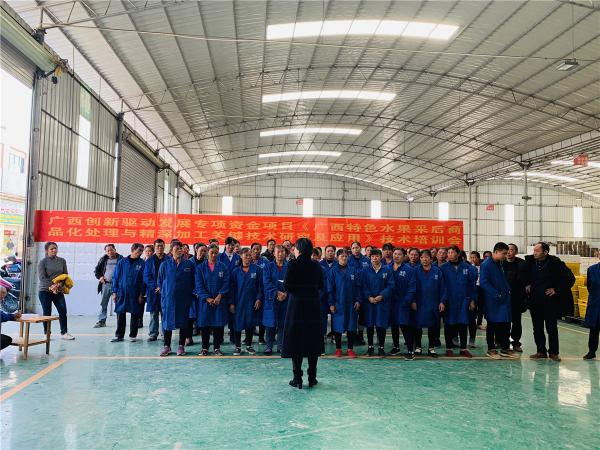 2019年12月11-13日,广西热作所科技人员一行4人赴融安县农业投资开发有限责任公司,开展广西创新驱动重大专项《特色水果商品化减损技术与节能干燥技术研究及示范推广》的实施工作。