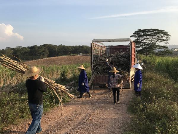布谷飞飞劝早耕,舂锄扑扑趁春睛。惊蛰的到来,标志着春耕备耕时节已然来到。面对新冠疫情的考验,在充分做好个人防护的情况下,广西热作所科技特派员卢业飞、欧克纬于2020年2月27-28日将本所自主引进选育的甘蔗优良新品种桂热2号,引入来宾市兴宾区南泗乡六五村种植。桂热2号甘蔗优良新品种宿根性好、产量高、抗性强且易于管理,适合坡地种植。将其引入来宾种植,能丰富来宾蔗区的甘蔗种质资源结构,并有望提高蔗糖产量及蔗农的收入。