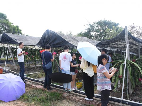 培训班学员先后实地参观了火龙果种质资源圃、茶园、澳洲坚果苗圃、番石榴种质圃和龙舌兰种质圃,详细了解相关作物生长特性、分布特征、功能功效、产业产能、经济效益以及种植推广等情况。期间,品尝的火龙果、番石榴、澳洲坚果新品种获得学员们的喜爱和赞扬。学员们表示,教师节来临之际到广西热作所实践学习接触和学到很多新的东西,这对他们今后教学和科研有很大的帮助,希望能和热作所的老师深入交流、合作,寻求更多合作机会,实现合作共赢。