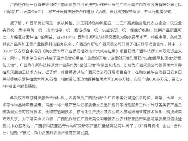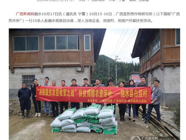 广西新闻网报道广西亚热带作物研究所赴融水县开展扶贫日系列活动