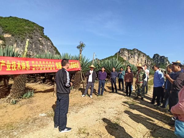 2020年10月22日,根据广西剑麻病虫害发生现状以及剑麻产业对纤维品质的要求,广西壮族自治区亚热带作物研究所(国家麻类产业技术体系南宁剑麻试验站)、海南省农业科学院植物保护研究所(国家麻类产业技术体系病虫害防控岗位)、中国热带农业科学院环境与植物保护研究所(国家麻类产业技术体系剑麻栽培与生理岗位)在山圩农场联合举办“2020年国家麻类技术体系剑麻种植技术现场培训班”。参加人员为广西剑麻集团技术骨干,共计40人,发放技术资料40份。
