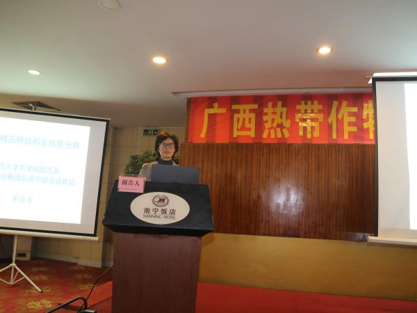 本届年会特别邀请了中国热带农业科学院香料饮料研究所副研究员闫林博士,广西大学农学院园艺系主任、园艺学科负责人、广西现代农业产业技术体系柑橘创新团队南宁综合试验站站长黄桂香教授,广西农业科学院植物保护研究所谢玲研究员,广西科技厅农业农村处徐有海科长,广西热作所、农业农村部农产品质量安全风险评估实验室陈永森高级农艺师分别作题为“咖啡种质资源收集保存、鉴定评价与利用”、“桂南柑橘品种结构及优势分析”、“农业有益内生真菌资源与利用”、“广西科技强农八大工程宣讲” 、“农产品质量安全风险评估(热带亚热带果品) ”的报告。此次年会共有14个专题报告,报告内容涵盖广西主要的热带作物产业,涉及到咖啡、柑橘、剑麻、坚果、木薯、甘蔗、茶叶、槟榔等多个作物研究领域以及农产品安全、科技扶贫、广西科技强农等方面。