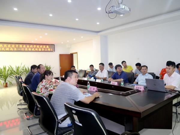 2021年7月9日,中国农业科学院科技局副局长周国民、协同创新处处长庄严、发展规划处副处长胡铁华、项目与成果管理处副处长王萌一行4人到广西热作所参观及会谈。广西农业科学院副院长张述宽、院长助理周忠实、科技处处长韦绍龙,广西热作所所长黄强,副所长庞新华、李军及相关部门负责人陪同。