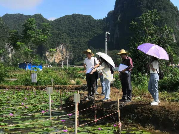 2021年9月18日,由广西科技情报学会组织广西花卉协会、广西壮族自治区林业科学研究院、广西职业技术学院3位专家到广西平果市广西平果华莲科技研究所和广西热作所对广西重点研发计划项目“食赏兼用型睡莲新品种选育与繁育技术研究”进行现场查定。