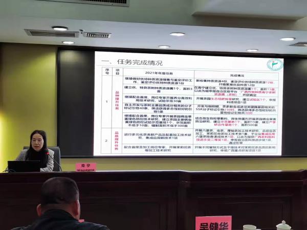 会上,南宁试验站站长温立香高级工程师代表试验站汇报了2021年团队任务完成情况,并与其他团队就工作中遇到的问题等进行探讨和交流。