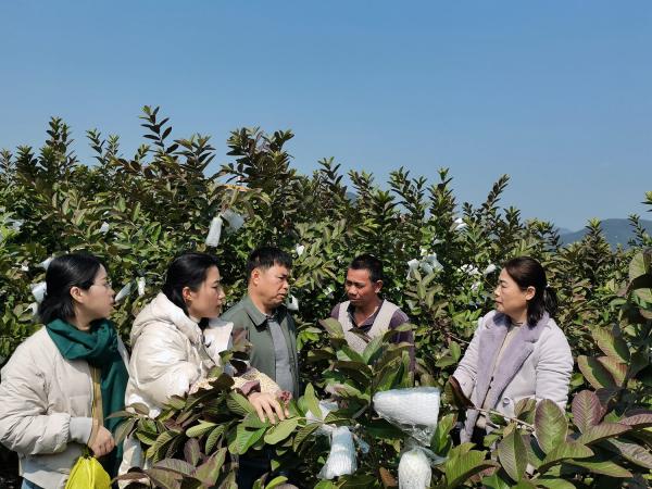 特色水果研究团队先后前往北流市山围镇塘头村西山果蔬种植专业合作社、新圩镇河村新农人合作社调研番石榴受寒害情况,调研发现,北流番石榴产业在此次寒害中受害程度较轻。团队为种植户详细讲解番石榴抗低温、防冰冻、采后修剪等栽培技术要点,为当地水果产业振兴贡献科技力量。