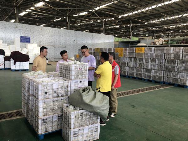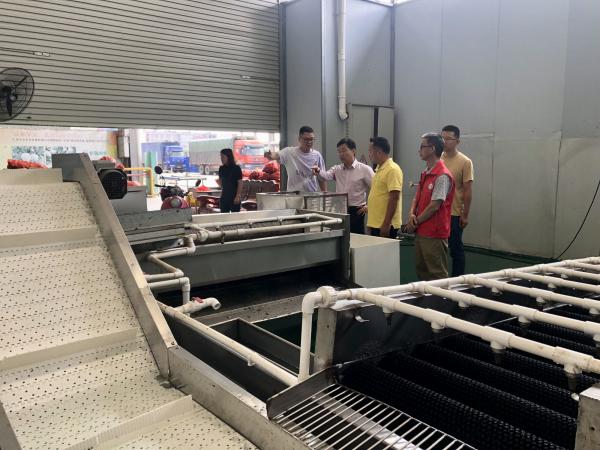 先锋队一行到北流市塘头番石榴产业示范区实地考察番石榴的种植与采后处理情况,并针对番石榴的采后初加工提出了意见建议。随后先锋队与广西北流市熠熠升晖生态农业科技有限公司负责人冯升晖一行到广西桂龙翔农贸物流产业园区考察水果加工企业的厂区冷库建设、初加工生产情况,指导企业如何高效利用冷库控制原料品质,提升番石榴初加工产品品质及风味。