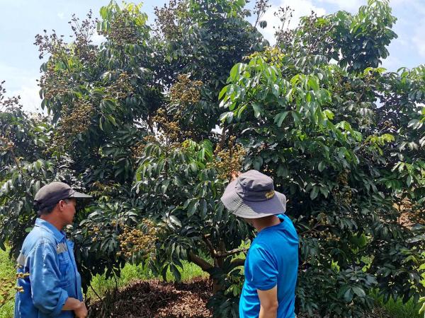 科技人员仔细查看了龙眼生长情况,并与当地种植户一起,就龙眼受近期持续高温、降雨等天气影响后采取的保花保果措施、种植用药及高发病虫害等展开调查。课题组后续将根据调查情况及时调整田间试验方案,为后续开展龙眼高风险农药降解试验和用药指导提供数据支持,为农业主管部门开展龙眼质量安全监控提供决策依据。