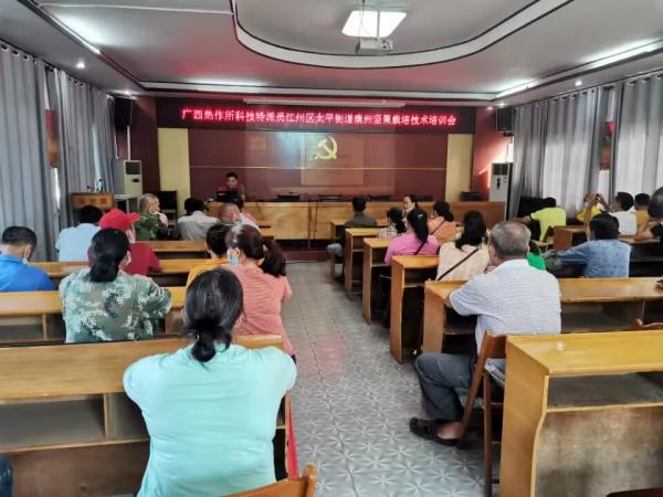 2022年9月23日,广西热作所乡村科技特派员一行3人到崇左市江州区太平街道办事处举办了澳洲坚果种植技术培训班,当地种植户、农户共60余人参加培训。