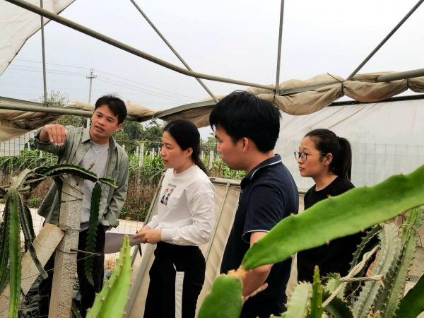 2023年3月24日,为深入了解近来高温干旱及冰雹等异常天气对火龙果产业的影响,广西热作所水果先锋队队员、科技特派员欧景莉、叶维雁、黄雪梅一行3人赴位于隆安县那桐镇的广西慧毅农业有限公司定江火龙果种植基地开展调查及科技服务工作。