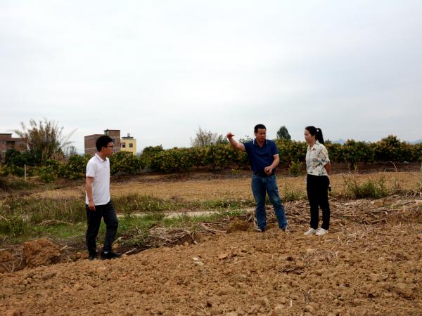 在位于田东县林逢镇的广西田东村投集团种植基地,甘卫堂在田间实地查看了番木瓜规划种植区的基本情况,与基地管理人员就种苗运输与种植等事项进行沟通,并针对土壤改良、灌溉设施布局及水肥一体化管理等问题提供技术指导。