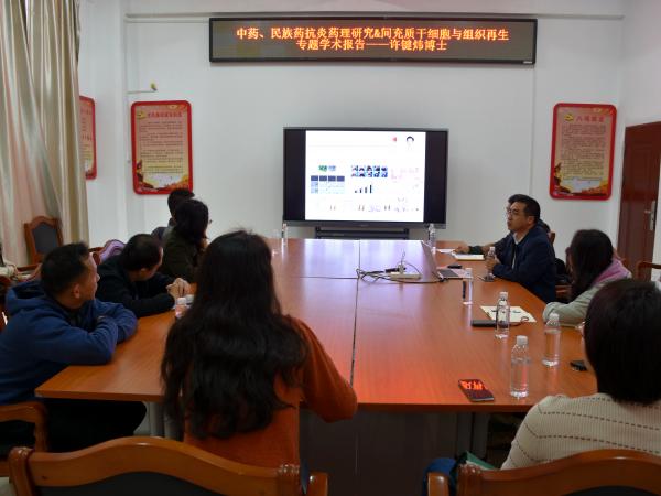 2023年3月31日,贵州医科大学组织工程与干细胞实验中心综合管理办公室主任许键炜副教授到广西热作所开展交流活动,并作题为《中药、民族药抗炎药理&间充质干细胞与组织再生研究》的学术报告,本次报告会热作所共有23名科技人员参加。