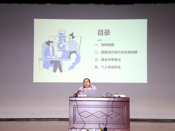 李丽结合自身的科研实践和国家自然科学基金项目申请经历,对如何凝练科学问题,编写申请书进行细致讲解,并强调研究基础、创新性、撰写细节对申报书具有十分重要的作用。