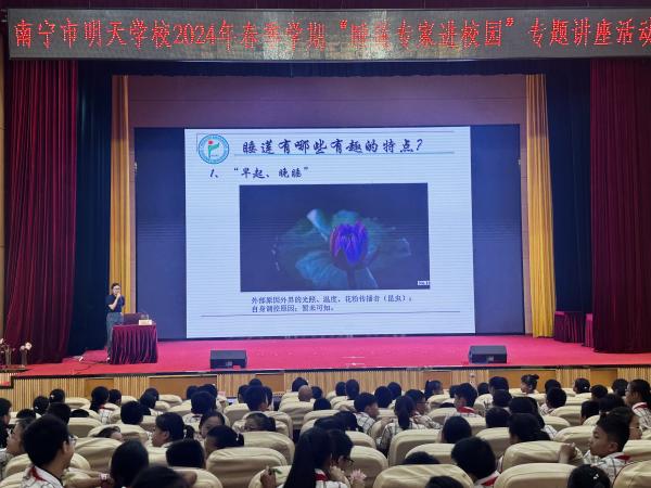 5月27日,广西热作所结合2024年全国科普教育基地“科创筑梦”联合行动-科普进校园系列活动,走进南宁市明天学校开展“睡莲趣事”科普讲座活动,共计629名师生参加本次讲座。