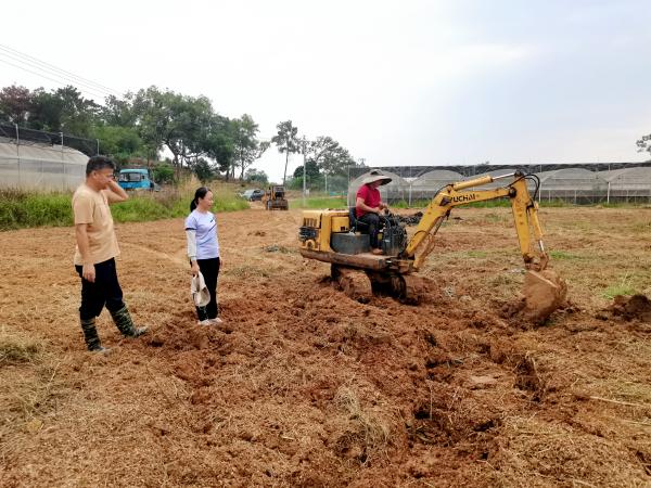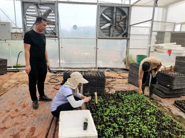 对番木瓜基地进行巡查及生产情况摸底后,团队成员提醒公司基地负责人加强基地巡查,做好育苗棚架、生产设施等加固工作;提前检查疏通基地排灌沟渠,确保排水畅通。此外,团成员队还查看了育苗棚内番木瓜苗的生长情况,发现番木瓜幼苗的长势较弱,对此,团队建议在大棚内增加小拱棚,达到保温保湿的效果,同时施用0.2%的尿素,以促进番木瓜幼苗快速生长